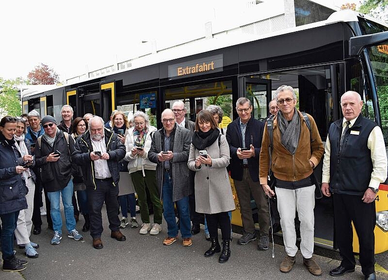 Letzte Woche startete eine Jungfernfahrt in einem Extrapostauto von Thalwil bis auf den Albis. Rund 30 Personen nahmen daran teil, um den neuen «Umweg im Postauto» einzuweihen. Es waren Vertretende aus Anstösser- oder Unterstützungsgemeinden, von kantonalen Ämtern, von PostAuto, Migros-Kulturprozent sowie Freundinnen, Freunde, Sympathisanten, Mitglieder des Produktionsteams und des Vereins Umweg Schweiz. Vor der Abfahrt waren alle in ihre Handys vertieft, um die App herunterzuladen. Dann hiess es: «Einsteigen!» Die Festgesellschaft schaute aus dem Fenster und lauschte mit Stöpseln im Ohr den Erklärungen. Das Ziel war das «Albishaus», wo ein Apéro bereitstand, um auf das gelungene Projekt anzustossen.