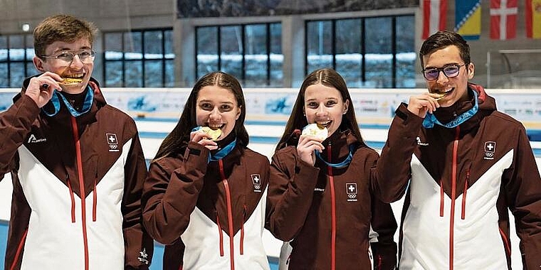 Das Mixed-Team um Felix Lüthold aus Affoltern, Jonas Feierabend (beide Curling Club Zug), Zoe Schwaller und Anja von Arx bezwingt in einem Herzschlagfinale Deutschland mit 9:8 nach Zusatzend.
